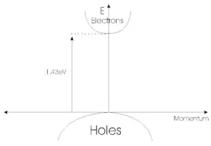 In a direct band-gap material such as GaAs, only a change in energy is required, as seen in figure 5. As such GaAs is very efficient at producing light, although in the infrared spectrum.