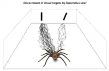 The resulting visual performance is impressive: Jumping spiders such as Portia focus accurately on an object at distances between 2 centimeters to infinity, being able to see up to about 75 centimeters in practice. The time needed to recognize objects is however relatively long (seemingly in the range of 10-20 s) because of the complex scanning process needed to capture high-quality images from such tiny eyes. Due to this limitation, it is very difficult for spiders such as Portia to identify much larger predators fast enough because of the predator´s size, making the small spider an easy prey for birds, frogs and other predators.[5][6]
