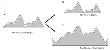 Wystrach et al. have proposed three further view-matching strategies. Firstly they suggest that ants compare the heights of the skylines of the present location with the memory of the view at the goal scene. If the skyline is too high at the current state, then the ant has to walk in the direction it is looking. In contrast, if the skyline is too low, the ant has to veer away from the current direction of orientation (Figure 3). Notwithstanding the general robustness of this model, it has two flaws. First, the height difference between the two views must be big enough to tell a difference. Second, the ant has to have the same absolute orientation as in the memory view in order to successfully compare the two skylines. This however may be achieved via a geomagnetic or a celestial compass. Therefore skyline height comparison is a good tool to obtain the rough heading direction when in a new location, but it is barely practical when near the goal [13].