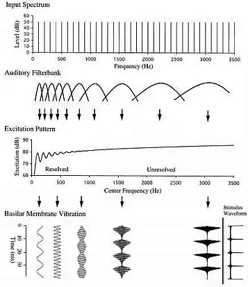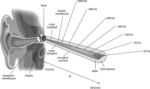 - ↑ Oxenham, A. J., Bernstein, J. G., & Penagos, H. (2004). Correct tonotopic representation is necessary for complex pitch perception. Proceedings of the National Academy of Sciences of the United States of America, 101(5), 1421-1425.
