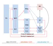 ![]() Figure 2. Schematic demonstrating the ascending pathway of rodent whisker-related sensorimotor system.