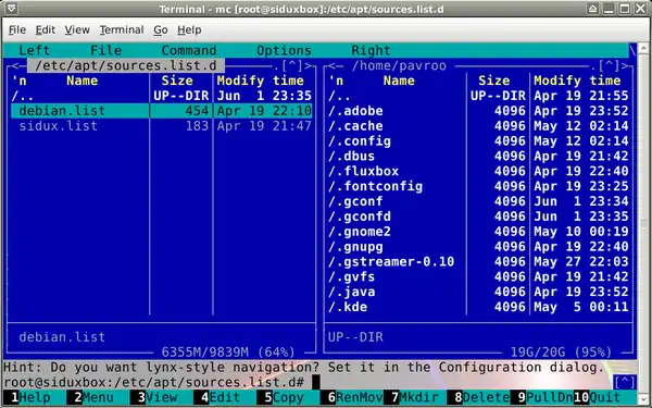 sux root password mousepad /apt/etc/sources.list.d/debian.list and mousepad /apt/etc/sources.list.d/sidux.list