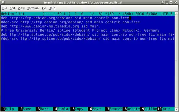 - b. Go to: /etc/apt/sources.list.d/debian.list -> edit it with F4 key.