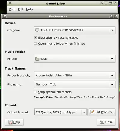 - Sound-juicer is a small application designed to playing, extracting and encoding audio files from audio CD's.
