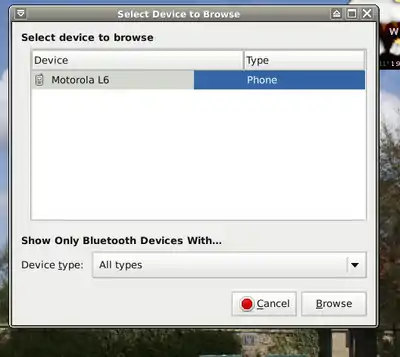 - 4. Nautilus will remember the last connection so next time don't run "bluetooth-applet" first,