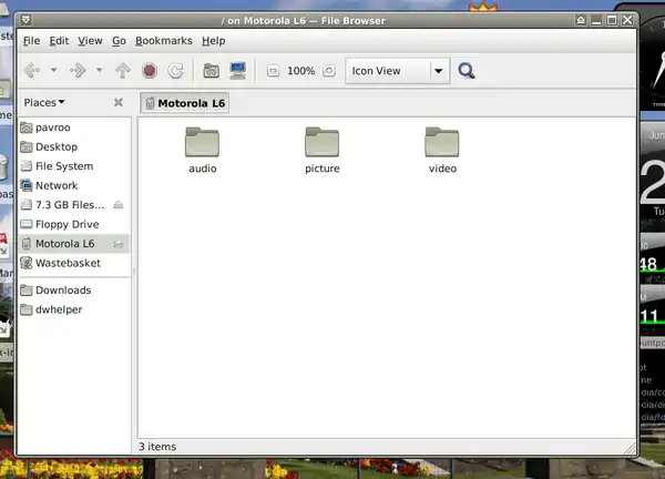- and choose "Go" tab-> device name (it's "/on Motorola L6" in my Nautilus window).