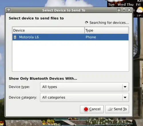 - The second way to send files out is using Bluetooth application designed for KDE environment.