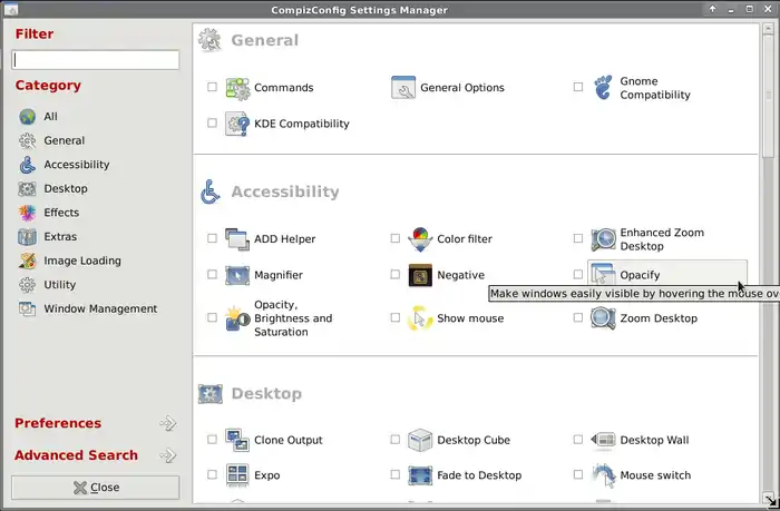 - Compiz - Debian Wiki: http://wiki.debian.org/Compiz