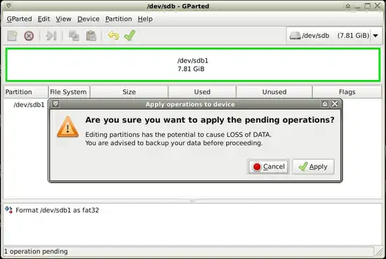 - It'll make "vfat" file system on "/dev/sdb1" partition".