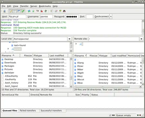 - b. To download a file fro server mark it in right window and prass <- arrow or drag it and drop it off