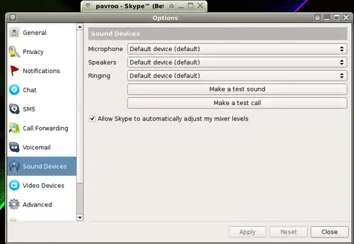 - 8. In a case of sound problems change Microphone and Speakers from default for other available.