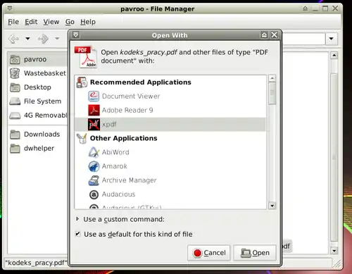 - What you have to do to open any PDF document is choosing "Document Viewer" (Evince) from mouse menu
