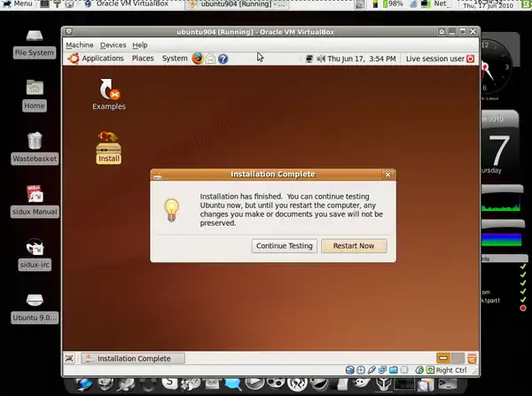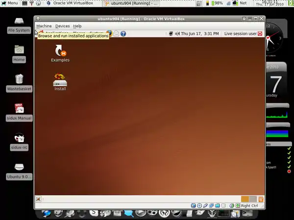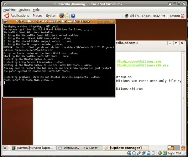 - I'll be working on Ubuntu 9.04 installed before as a guest system.