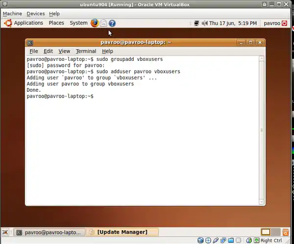 - a. Create "vboxusers" group for a guest system's user in Terminal: