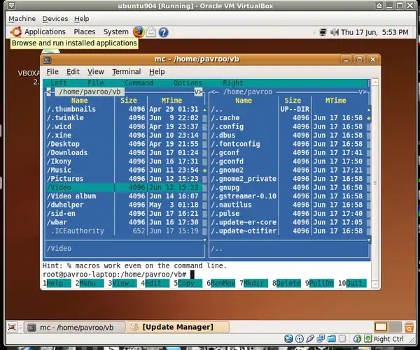 - b. Nautilus file manager - go to home folder, right click on "vb" folder and choose: "Open as root".