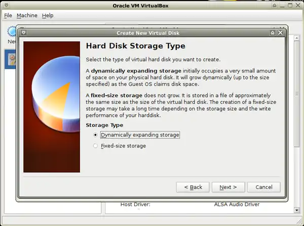 - a. Dynamically expanding storage - it'll use as much computer drive as the virtual disk will use.