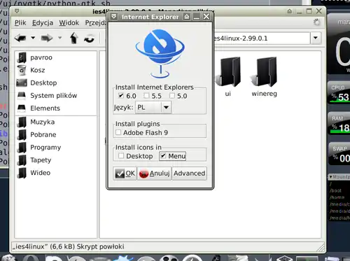 - 3. Next I tried to install "IE6" using "IEs4Linux" script downloaded from: www.tatanka.com