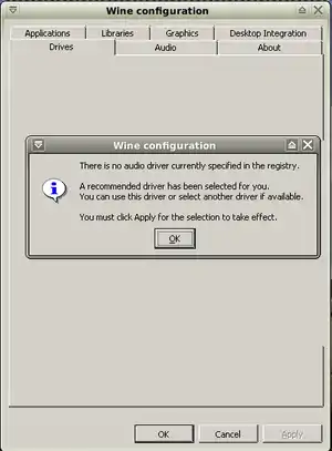 - 2. To check Wine settings go to: Menu-> System-> Wine Configuration.
