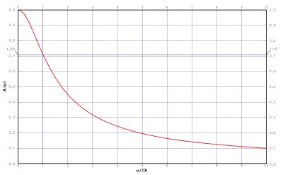 Find the frequency response function, and hence the amplitude and phase response functions, of the following RC circuit (it is already in phasor form):