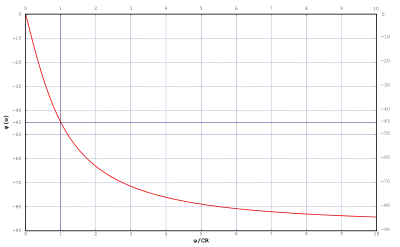 Since the frequency response is a complex function, we can convert it to polar notation in the complex plane. This will give us a magnitude and an angle. We call the angle the phase.