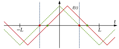 Any quarter-wave symmetric signal can be made even or odd by shifting it up or down the time axis. A signal does not have to be odd or even to be quarter-wave symmetric, but in order to find the quarter-period point, the signal will need to be shifted up or down to make it so. Below is an example of a quarter-wave symmetric signal (red) that does not show this property without first being shifted along the time axis (green, dashed):