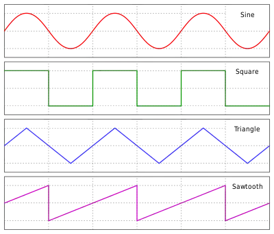 Here is an image that shows some of the common periodic waveforms, a sinusoid, a square wave, a triangle wave, and a sawtooth wave.