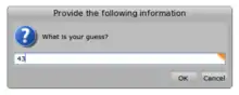 First, we'll have the game ask us a number. The way to ask for input is by using the method request:. It shows a dialog box where the user can enter some text. The call returns that text as a string. Try this in a Workspace, and make sure you "print" the resulting value: