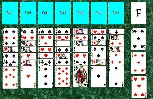 The cards on the tableau are built down by suit. Cards are moved one at a time, unless a suit sequence of cards is formed, which can be moved as a unit. Like Freecell, such a sequence is treated as one card and movement requires enough free cells for all the cards in the sequence. When an empty column occurs in the tableau, only a card of the rank directly beneath the beak or a suit sequence starting with that rank maybe placed on it. (For example, if the beak is an ace, only a king or a suit sequence starting with a king may be used.)