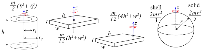 For more shapes see Mass Moments Of Inertia Of Common Geometric Shapes.