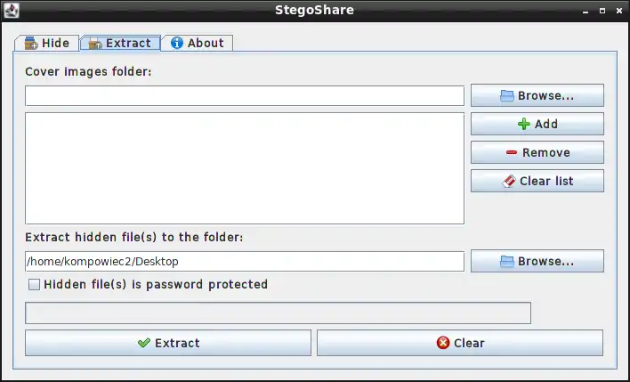 - In the "hide" tab, select the folder with photos (Cover images folder)