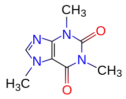 Caffeine (1, 3, 7-trimethylxanthine) is a natural product found in plants. While the actual caffeine content of plant seeds and leaves varies quite a bit from species to species, caffeine is viewed as the most abundant naturally-occurring purine alkaloid, meaning it is derived from one or more purine nucleotides. Alkaloids are a large group of compounds that can be found mainly in plants and contain basic nitrogen atoms. These compounds usually exist as salts because of their basic nature. Major caffeine sources include the seeds of the coffee plant (Coffea Arabica), tea leaves (Camellia Sinensis), and cola nuts. It is widely accepted that caffeine is a stimulant when consumed by humans, with its main focus falling upon the central nervous system. [1] Plants utilize caffeine as a line of defense. It works as an insecticide for the plant, deterring many potential threats as it can obstruct metabolic pathways. [2]