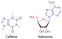 By in-taking caffeine, the body feels a sense of alertness and wakefulness. The reason caffeine affects the body in the way that it does is because of its structural resemblance to both adenosine and cyclic adenosine monophosphate (cAMP). As a result of similar structures, caffeine can potentially bind to receptors that usually bind to adenosine and its derivatives. Within the body, adenosine plays a role in regulating the brain and its activity. When there are large buildups of adenosine in the brain, they begin to bind to the brain receptors and that causes reactions leading to sleepiness and feeling drowsy. However, when caffeine enters the body it binds to these same receptors because of its similar structure and this prevents adenosine from binding to these receptors and this delays the body from feeling sleepy.