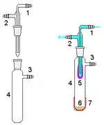 Sublimators can be set-up in a multitude of ways but the main goal is to heat the solid inside a sublimation chamber and have it reach the gas state and collect on a tube or apparatus inserted into the sublimation chamber. After the sublimation is complete, the tube can be removed and the collected caffeine can be taken off. [3] The tube is attached to a vacuum which lowers the overall pressure in the apparatus. This lowering of the pressure insures that the caffeine sublimates instead of melt then vaporize. Also the lowering of the pressure does not allow the impurities to sublimate, allowing the experimenter to collect pure caffeine crystals. [4]