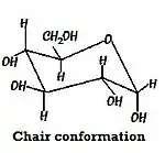 Hexoses and pentoses that have converted into pyranoses or furanoses take on either chair, boat, or envelope conformations due to the tetrahedral geometry of their carbons. Pyranose rings can form either chair or boat conformational isomers (conformers) while furanose rings take on the envelope (also called half-boat) conformation. Substituents on the carbons in the monosaccharides are now either in axial or equatorial positions. The favored conformational isomer will be that which is the least sterically hindered, often containing the majority of its bulkier substituents in equatorial positions, since substituents in axial positions on the same side of the ring create steric hindrance. The chair conformation of pyranose rings can also undergo a ring flip, which switches the orientation of substituents from axial to equatorial and vice-versa, to produce an additional conformational isomer. Chair conformation of six-membered rings is most favorable as it reduces steric interference between two carbon substituents. Boat and Envelope conformations do not exist, but are theorized to act as an intermediate structure existing briefly between a ring flip transition in which axial substituents become equatorial and vice versa.