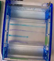 Electrophoresis is the movement and subsequent separation of ions and charge macromolecules through a medium when an electric potential is applied. It is a powerful tool used in fundamental research and diagnostic settings for analysis of biomolecules. It is commonly used for purity and molecular weight determination for both DNA and protein solutions.