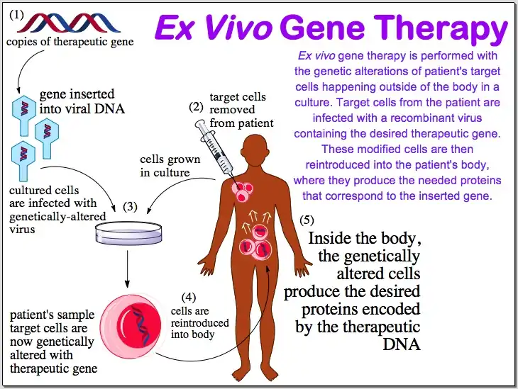 EX VIVO method: cells are genetically-altered outside of the body and then reintroduced.
