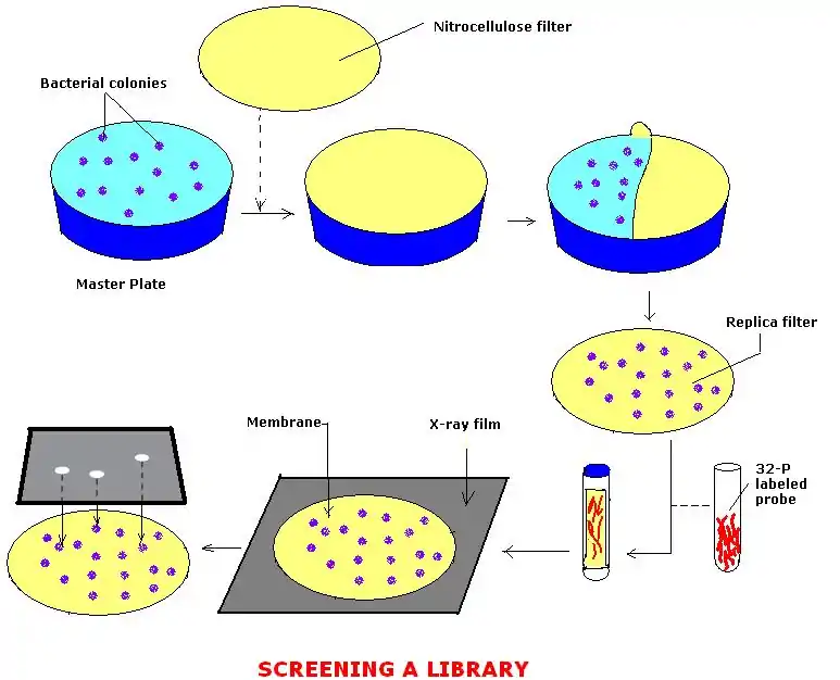 In physical reality, a genomic library for humans is a collection of bacteria, the most common one is E. coli. The usable sequence of DNA from the human genome gets transferred and carried through the E. coli. The DNA is prepared by digesting it with a restriction enzyme. Then the target segments are inserted into the bacteria by using lambda phage. This creates a basic unamplified library, where the bacteria have been allowed to multiply and create additional copies of each section of the DNA.