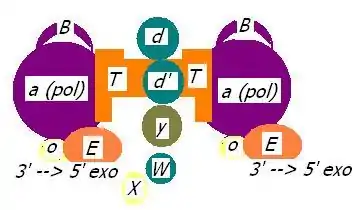 DNA polymerase is a holoenzyme that catalyzes the polymerization of deoxyribonucleotides into a DNA strand. DNA polymerase is an active participant in DNA replication. It reads the intact DNA strand as a template and uses it to synthesize the new strand. The newly polymerized DNA strand is complementary to the template strand and identical to template's original partner strand. DNA polymerase uses a magnesium ion for catalytic activity.