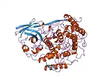 Arthropod hemocyanin, displaying both B- sheets and a- helices.
