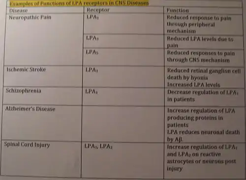 Table of LPA Functions in CNS Disease
