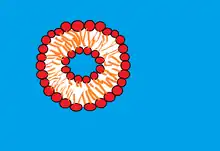 A liposome, or lipid vesicle, is a vesicle enclosed by a lipid bilayer. Lipsomes are the opposite of micelles in that they are hollow on the inside. Liposomes are important for studying membrane permeability and they can be used to deliver ions or molecules inside cells. It is characterized by a bilayer membrane that creates an outer aqueous compartment and an inner aqueous compartment due to the hydrophilic heads and hydrophobic tails of the lipids, as shown by the figure below.