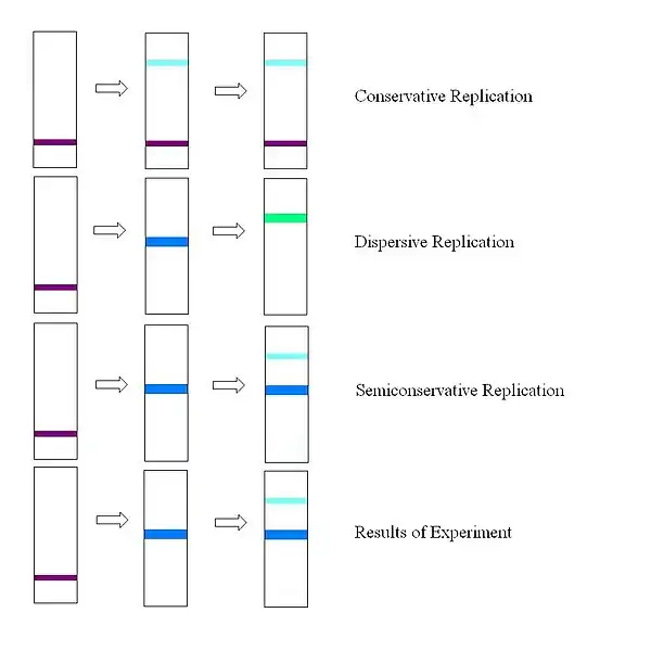 Watson and Crick proposed that DNA replicated semi-conservatively, but conservative and dispersive replication were still plausible until the theories could be disproved. In 1957, Matthew Meselson, and Franklin Stahl devised an experiment to determine whether DNA replicated following a conservative, semi-conservative, or dispersive model.