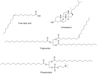 Some examples of the types of lipids are: neutral, saturated, (poly/mono) unsaturated fats and oils (monoglycerides, diglycerides, triglycerides), phospholipids, sterols (steroid alcohols), zoosterols (cholesterol), waxes, and fat-soluble vitamins (vitamins A, D, E, and K). Lipids have many different biological functions such as fuel molecules, structural building blocks for phospholipids and glycolipids, covalent attachments to guide molecules to specific membrane locations, and intracellular messengers.