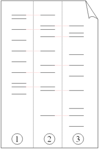 DNA fingerprinting is also a useful technique to determine whether or not two people are related. Although no two people share the same DNA patterns, sections of microsatellites are passed down from parent to child. Not all of these sections are passed down, but offspring do not contain any pattern that their parents did not possess. A paternity or maternity test can be performed by comparing the DNA fingerprint of the individuals in question. If there are large groups of patterns that repeat in each sample’s fingerprint, it is likely that the individuals are related. The embedded image contains a three different DNA fingerprints, as indicated by the three different patterns of bands. Although these patterns represent fingerprints from different people, sample 2 shares similar patterns with both 1 and 3, which indicates that the person whose DNA is represented by sample 2 is likely to be the child of sample 1 and 3.