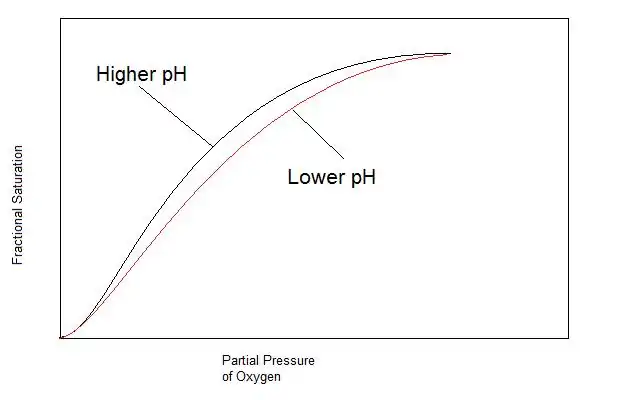 As the pH increases, so does the ability for hemoglobin to bind oxygen. However, as the pH moves to a lower pH (as slight as a drop from 7.4 to 7.2), the ability to bind to oxygen decreases.