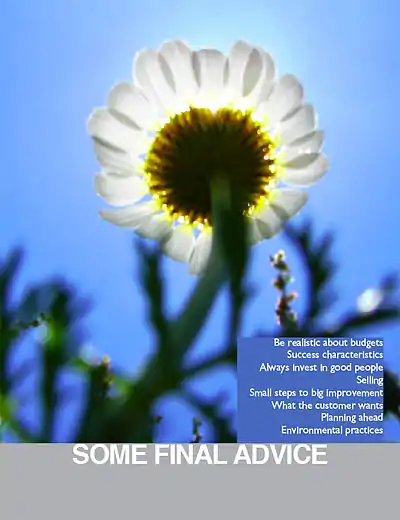 We would stress again the need to take as much advantage as possible of the business training available under the Enterprise Training programme. Visit the website www.business.govt.nz or phone 0800 424 946.