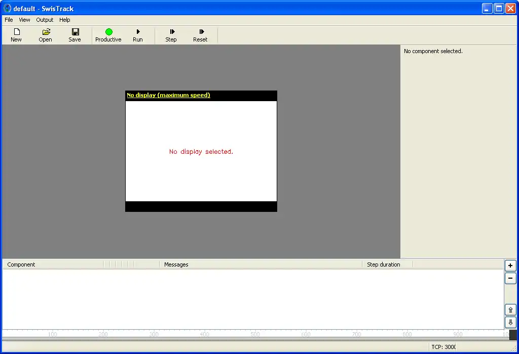 - In productive mode, SwisTrack never resets the components automatically. Therefore, only a subset of the configuration parameters are available any more, namely those which do not change the processing completely. For example, you can still adjust the exposure time of a camera, but you cannot change from color to grayscale mode. In addition, it is not possible to add, remove or reorder components in productive mode.