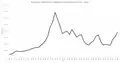 Tulip price index from 1634 to 1637
