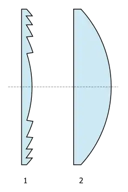 Theatrical Fresnels are typically made in 8, 6 or 3 inch varieties, referring to the diameter of the lens, with lamps ranging in wattage from 150 W (typically with a 3-inch fresnel) to 2000W (with an 8-inch fresnel). Fresnel lenses can operate close to the light source and are very cheap to produce, so the lanterns tend to be small and cheap.