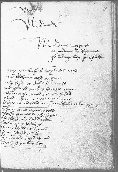 f. [68r] Madame Madame d Madame margeret et madame de Richemont Ie vodroy bien quil fult1, 2
